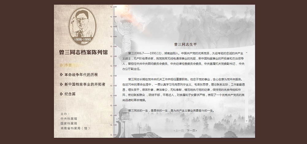 受湖南省檔案館委托建立曾三同志檔案陳列館