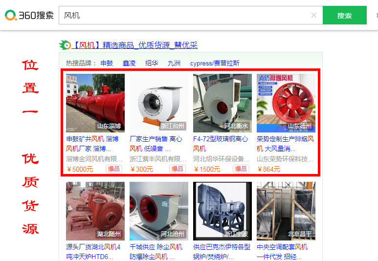 慧優(yōu)采“爆品”,它是慧聰 和 360搜索聯(lián)合助推行業(yè)“爆品”, 365天*24小時全時段、PC端和移動端全終端,全國不限區(qū)域投放,在360首頁的“優(yōu)質貨源”和“優(yōu)選廠商”雙位置展示:產(chǎn)品+品牌+公司信息,且標注為“爆品”,并贈送360-采購頻道前4位全年展示。