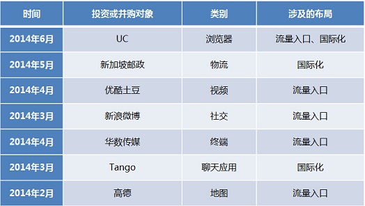 縱觀2014年的阿里巴巴投資并購(gòu)案例,阿里做的最多一件事,就是瘋狂買流量入口。