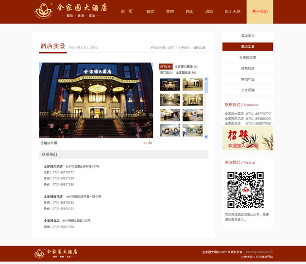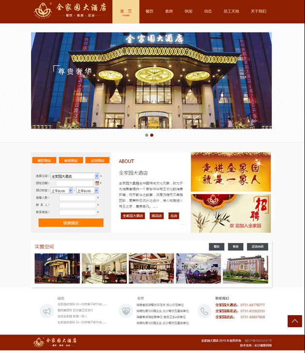 全家園大酒店按五星級(jí)標(biāo)準(zhǔn)建造的集客房、餐飲、康樂(lè)為一體的綜合型高端商務(wù)精品酒店 。網(wǎng)站上不僅展示了全家園大酒店,還展示了全家園雨花店、老店,及全家園實(shí)業(yè)旗下的四一農(nóng)業(yè)、濱江會(huì)所等??蓪?shí)現(xiàn)在線的餐飲預(yù)定、客房預(yù)定、足浴預(yù)定,及行政管理中的人才招聘等。