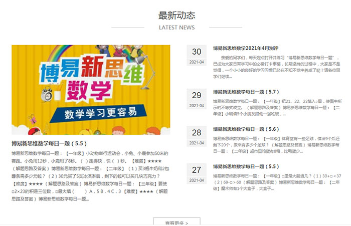 與江之韻的合作,始于2017年,四年間,見證他們穩(wěn)扎穩(wěn)打、開疆拓土:從最初的風(fēng)車坪校區(qū)小學(xué)部,到風(fēng)車坪校區(qū)初高中部,再到現(xiàn)在九華分校成立。官網(wǎng)上能看到穩(wěn)定更新的“新思維每日一題”,這也成為孩子日常學(xué)習(xí)中必備的打卡事情。